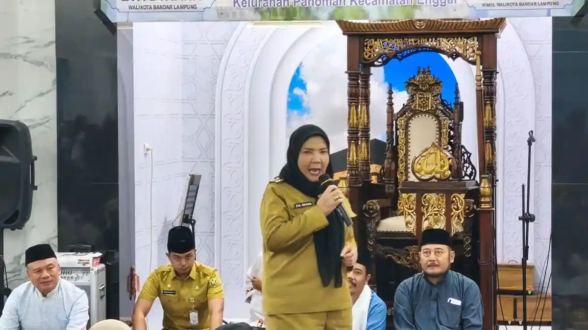 Hal itu disampaikan Eva Dwiana usai kegiatan safari Ramadan di Masjid Jami Arruhamaa Mosque, Kecamatan Enggal, Kota Bandar Lampung, Senin 9 Maret 2026 malam.