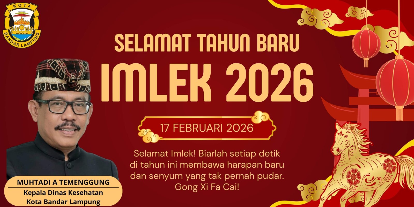 Bandar Lampung, berita-public.com – Muhtadi A Temenggung Kepala Dinas Kesehatan Kota Bandar Lampung mengucapkan selamat tahun baru Imlek 2026.
