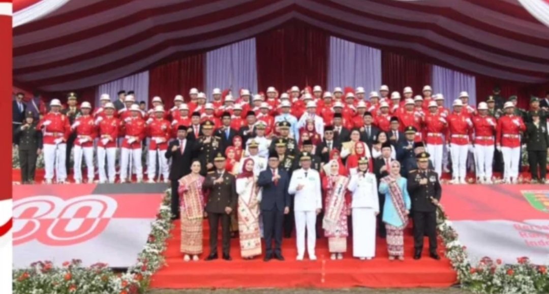 Lampung, BP – Ketua DPRD Provinsi Lampung Ahmad Giri Akbar, mengikuti upacara peringatan HUT ke-80 Kemerdekaan Republik Indonesia, di Lapangan Korpri Komplek Kantor Gubernur, Ahad. (17/8/2025).